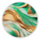Emerald Jade Green and Gold Abstract Art Ceramic Knob