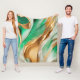 Emerald Jade Green and Gold Abstract Art Fleece Blanket