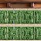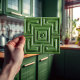 Immerse yourself in the mesmerizing depths of this emerald maze ceramic tile, where the allure of intricate paths is rendered on a perfectly flat surface. The lustrous green glaze varies in tones from a deep forest to a bright shamrock, giving life to the labyrinthine design. Though no actual relief is present, the clever use of shading and glossy finish creates an optical illusion of depth and texture. The overall effect is a playful yet elegant piece that captivates the observer, inviting them to trace the journey through the maze with their eyes. It's a statement piece that combines the classic appeal of a maze with the modern twist of faux relief, ideal for adding a dynamic visual element to any space.