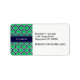 Emerald Green, Navy Blue and White Moroccan Quatrefoil Trellis Pattern #5DS, Teal Ribbon Name Monogram Label