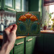 Emerald Orange Wall Decor Art Nouveau Ceram Ceramic Tile