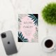 This modern and elegant wedding invitation is perfect for the summer and spring. It features various leaves and two color block corners with simple typography. The color scheme includes dusty green, emerald green, blush pink, and real rose gold foil. It's contemporary, minimal, stylish, and unique, the perfect design to impress your guests.