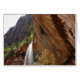 One of the famous sights of Zion National Park is the series of Emerald Pools. This picture shows the waterfall which flows from the Middle Emerald Pool into the lower one from almost underneath the falls. The pale green of spring leaves on the trees contrasts nicely with the shades of red and orange in the rocks. This photo is also featured as the widescreen wallpaper "Emerald Pool Falls III" from MLeWallpapers.com. Check out our store for more photos from Zion National Park and other US National Parks.