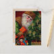 Santa is laden with a bag of toys and lots of Christmas cheer. An adjoining tree is festooned with glimmering beads and glowing candles. Santa wishes everyone a Merry Christmas in golden lettering. The vibrant colors and elaborate detail of this Victorian postcard provide a perfect image for your holiday correspondence and decorative items.