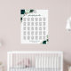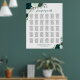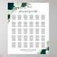 This lovely 30-table wedding seating chart exudes rustic elegance and charm. The hand-painted watercolor design, featuring a delightful palette of emerald green and sage colored roses, complemented by gorgeous eucalyptus leaves, foliage, and garden greenery, is sure to captivate your guests. The script calligraphy title elegantly invites guests to "please find your table", while leaving space at the bottom for the names of the couple and the wedding date. With seating assignments for 300 guests, with 10 seats per table, this seating chart is both practical and beautiful, making it easy for your guests to locate their designated tables.