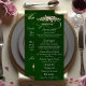 A Rococo style rose arc scroll design and heart monogram embellish this wedding menu. Menu details on the front and a pre-written thank you message for your guests which can be easily changed with your own message, on the back. Designed to coordinate with the Romantic Roses & Calligraphy Wedding Collection. To change details, click «Personalize». To move the text or change the text size, font, or color click «Click to customize further»