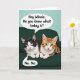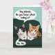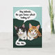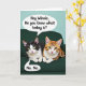 This design shows two house cats perched close together on a deep emerald sofa, their bodies angled slightly inward as if sharing a private joke ❤️. One cat is sleek and black-and-white, while the other is a warm orange tabby with soft stripes, and both stare out with bright yellow‑green eyes that feel curious and a little affectionate. Their paws rest neatly on the cushioned seat, and the plush fabric folds under their weight, adding a cozy, lived-in touch. Behind them, a soft teal wall meets the rich green couch in a simple room setting that keeps attention on their faces and fur. Two white speech bubbles float above the cats, turning the scene into a friendly exchange that reads like a teasing conversation between close companions 🌼. The top bubble sits higher and asks, “Do you know what today is?”, and the lower bubble answers, “No. No.” The lettering inside both bubbles is black and easy to read, with the upper line placed slightly left of center and the reply positioned lower near the second cat’s head. The sofa’s deep green tone contrasts with the pale wall, while the cats’ glossy coats and chartreuse eyes stand out under soft, even lighting.