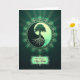 This greeting card features a glowing circular medallion centered on a deep green background, where a tall tree is split into two balanced halves like a quiet duet of friendship and care ❤️. The upper half shows a lighter mint-to-jade canopy spreading outward, while the lower half holds intricate roots set into a darker emerald section, as if the tree is reaching and grounding at the same time. An ornate ring of detailed curls and filigree surrounds the circle, giving the design a gentle radiance against the shadowy green field. Soft rays of light fan out behind the medallion, adding a calm, tender atmosphere that feels like a shared moment of appreciation. Near the bottom, a decorative frame with curved edges holds the message text, placed neatly beneath the main emblem. The words “From both of us Step Mother” appear centered inside that frame in flowing, light-colored lettering that contrasts clearly with the green tones 🌼. The palette shifts from forest green to bright jade across the artwork, with the circular emblem and border catching the most glow.