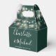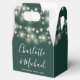 Elegant wedding favor box featuring pretty string lights, chic signature script names and special date on an emerald green background. You can personalize with your own thank you message on the reverse. A perfect way to say thank you to your guests! Designed by Thisisnotme©