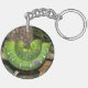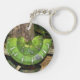 A handsome green Emerald Tree Boa curled up on a branch. A perfect key chain for snake enthusiasts!