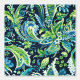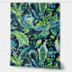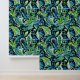 A seamless preppy pattern featuring shades of green and blue floral elements set against a black background. The design combines vibrant foliage with a dark backdrop to create a striking and elegant visual effect.