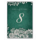 Vintage floral lace design on emerald green background, elegant and classy, great for vintage wedding, rustic wedding in winter. Custom your own table cards add a personal touch to your wedding party.