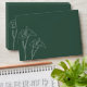 A minimalist, modern and elegant emerald green wedding envelope featuring two elegant one-line drawn white Calla Lilies against a deep emerald green background. The inside of the envelope features your names and the same white calla lily imagery. An elegant and lively handwritten calligraphy font set states your names and return address.