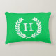 Emerald White Wheat Laurel Wreath Initial Monogram Accent Pillow