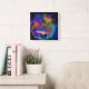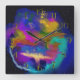 These dramatic clocks add a touch of flair to your decor. This one is from an abstract in a riot of bright colors to cheer up any room. Counter clockwise numbers for people who are always short on time - or just for people who like to be a bit different!