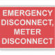 An EMERGENCY DISCONNECT, METER DISCONNECT label for electricians to satisfy the 2023 National Electrical Code requirements of Article 230.85(E)(1) and (2).