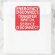 A sheet of six, 3" x 3" EMERGENCY DISCONNECT, TRANSFER SWITCH, SERVICE DISCONNECT sticker labels for electricians to use for generator installations.