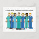 A row of cartoon nurses in scrubs of different shades of blue and green. They are standing against a clean white background and the image is accompanied by the words 'Celebrating National Emergency Nurses Week'.