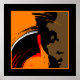 Abstract portrait of an African American black feminist woman emerging out of broad brushed strokes of yellow, red and white background. Original art of Margaret Loftin Whiting.