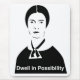 Emily Dickinson Dwell in Possibility mouse pad. A minimalist vector design featuring the American poet Emily Dickinson with her famous declaration “Dwell in Possibility,” printed in Helvetica font. A great gift for fans of Emily Dickinson, poetry, and American literature.