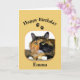 A distinctively beautiful calico cat brings birthday wishes. You can easily personalize this card by changing the name on the front and inside.