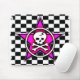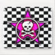 This Emo Checkerboard features a pink graphic star with a cartoon skull & crossbones image on a black & white checkers background.