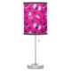 The lamp looks exactly like the picture, bright and colorful. The lamp shade is plastic not what I expected, however I love it! The printing is clear and the name can easily be read.