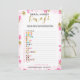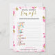 A delicate modern floral bridal shower "Emoji Pictionary" game, the design features a pink and gold floral pattern. This card is personalized with the bride-to-be's name and the shower date.