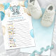 This adorable baby shower emoji pictionary game features turquoise and gray baby elephant with gold and turquoise balloons and confetti. Easily customized for your event by clicking 'Personalize'. Perfect for a gender neutral baby shower! Emoji Key: