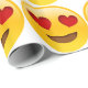 Funny Emoji design. Yellow face with red heart eyes. Add your own text. Change the background color to your favorite one.