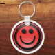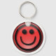 Happy keys! Key chain / Key ring with 3D effect style, smiley-face emote design, in red and black.