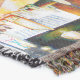 A quality printed throw has its advantages. This is a much finer weave throw than its loopier cousins, and though lighter, it is worth the investment for custom room accessorizing. The back is much prettier than the typical brown, and the fringe on the long sides very vivid, the selvage nicely done. Before photographing, I washed the throw in cold water, delicate, with a thicker woven throw the same size. On tumble dry low, this throw was dry in half the time as the other. This is a very practical quality if you use throws for furniture covers or to wrap up in frequently. The sleekness of the fabric makes it a great layer for accenting or protecting without the feeling of sitting on too much stuff. Perfect for napping or when you feel a light chill coming on. The color printing is beautiful and on this fabric, matched the design and color of my Photoshop image. This is an advantage for blending room fabrics and colors. The fringe on the short sides prints the colors from the design image and therefore varies from the side fringe. I streaked a white fractal line through the plaid pattern to give the illusion of weaving. This printed as crisp as an illusory thread, and put some white in the short side fringe, showing another advantage of print vs loomed- for artistic purposes, line lines, detail, and color integrity can be planned and preserved. My loomed throws have color limitations and more of a needlepoint texture. Print throws reproduce an exact image. The throw felt a little stiff straight out of the package, but this went away in the first delicate wash. Of course I searched the wash water for ink or bleeding and there was none.