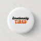 A bold and illustrative design featuring the phrase "Emotionally Tired." The word "Emotionally" is in a groovy, script-like black font with a white outline, while "TIRED" is in a large, chunky, orange bubble/psychedelic font. This design has a fun, retro, 70s vibe, contrasting the heavy sentiment with a playful aesthetic. Perfect for apparel, stickers, mugs, or print-on-demand products for anyone feeling overwhelmed or expressing a state of mental exhaustion in a stylish way.