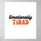 A bold and illustrative design featuring the phrase "Emotionally Tired." The word "Emotionally" is in a groovy, script-like black font with a white outline, while "TIRED" is in a large, chunky, orange bubble/psychedelic font. This design has a fun, retro, 70s vibe, contrasting the heavy sentiment with a playful aesthetic. Perfect for apparel, stickers, mugs, or print-on-demand products for anyone feeling overwhelmed or expressing a state of mental exhaustion in a stylish way.