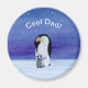 A watercolor painting of a father Emperor Penguin and his chick are depicted on this Cool Dad magnet.