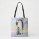 Adult Parent Emperor Penguin with Baby Chick. Cute Penguins from Antarctica Watercolor. Emperor penguins are truly beautiful birds. Digital Art Watercolor painting of adorable penguin birds of mother or father with a baby. With splashes of colors in deep purple/blue, cyan green/blue, yellow and a bit of orange.