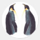 The design on these Round Stickers is an illustration of two Antarctic Emperor Penguins facing each other. The Emperor Penguin is similar to the King penguin. On the Emperor the orange on the face blends into white. On the King penguin the orange is seperated from the white with a strip of black. Hand illustrated using Derwent Water Color Pencils.
