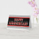 This is a 25 years employee anniversary card featuring the centrally placed text 'HAPPY ANNIVERSARY', written in a 3D effect layered font in red, gray and white and set against a black rectangle with red borders. Above the text there are three gray horizontal stripes going from dark, to mid, to light gray. The same gray horizontal stripes arrangement are also below the text. Between the words 'HAPPY' and 'ANNIVERSARY' is the text '25 YEARS' repeated four times and divided by asterisks. The mid gray stripes above and below the text are also decorated with asterisks.