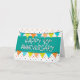 This is a colorful 40 Years Employee Anniversary card, set against a white with small triangles pattern background. In the center of the card is the text 'HAPPY 40th ANNIVERSARY' set against a green jade background. In matching colors to the triangles pattern, there is bunting above and below the text.