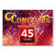 This is a colorful Employee Anniversary 45 Years card featuring the text 'CONGRATS' which is written in a fun font with some swirly elements and overlaid with a yellow to deep red gradient with a touch of digitally created sparkly stars and dots detail. The text is set against an exciting celebratory spray of fireworks background with a matching color palette to the text. Underneath CONGRATS is a banner on which is written '45 YEARS'.