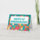 This is an extremely colorful employee 4 year anniversary card. The main colors are jade, pink, orange, red and yellow in a variety of shades. The pattern is made up of small squares containing geometric shapes. The text reads: HAPPY 4th ANNIVERSARY in matching jade and in a stylish font.