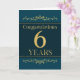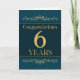 This is an employee 6th anniversary card. The design is formal and elegant and set against a jade colored background with gold foil effect text and decorative elements.