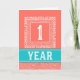 Underneath is the text 'YEAR' which is set against a turquoise colored background, contrasting nicely with the main color of coral. Underneath the word 'YEAR' is a matching pattern to that which makes up part of the border around the number 1.