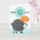 This is a fun employee 20 years anniversary card featuring a wonderfully quirky sheep illustration, where the sheep is wearing an orange bobble hat, green round rimmed spectacles and super trendy wellies. The text at the top reads 'WOW, 20 YEARS, already!', where the '20 YEARS' is in a digitally created badge effect. Beneath that is the sheep illustration, above which is an orange speech bubble and the text 'baaaaarely believable', where the a's in the word baaaaarely are out of alignment, to simulate the wobbly 'baaaaa' sound that sheep make.
