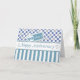 A fun, colorful Employee 30th Anniversary card featuring a large blue polka dots on white pattern in the top half; some of the polka dots have a silver sparkle effect overlay, and a bold, jade and white vertical stripes pattern, with the addition of decorative interspersed thin silver sparkle effect vertical lines, in the bottom half.