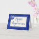 This is a 30 Years Employee Anniversary Card featuring the centrally placed text 'Happy Anniversary' written in blue in an attractive font with swirls on some of the letters. The text also has a silver sparkle effect edging to the right and a slight damask texture overlay. The text is on a pale cream text box with a linen effect overlay and blue narrow border outline detail. A drop shadow gives the text box a slight 3D effect. Behind the cream text box, is a blue border with silver sparkle effect edging and drop shadow. On the top left corner of the text box is a digitally created badge which is blue with a silver sparkle effect wavy border and drop shadow. On the badge is the text '30 YEARS'. The main background is blue with a damask pattern overlay and a few very fine, silver sparkle effect curves and swirls.