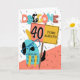 This is a fun and colorful employee 40 year anniversary card featuring a comical dog illustration. The dog is wearing huge glasses and has a sign with him on which is written: '40 YEARS ALREADY!', above which is the text: DOGGONE which is written in an illustrated, colorful font.