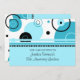 Customizable employee anniversary luncheon party invitations in modern and contemporary blue, black and white circles and polka dots pattern. Celebrate your staff's many years of service with these unique custom office anniversary lunch party invitations.