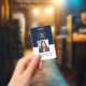 Add your brand to this vertical professional business badge with your company logo, employee's name photo, professional title on the front of the card. On the back, you have a placeholder for a scannable barcode and details of your company where the card can be returned if it gets lost and also the employee's ID number.