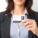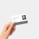 This design offers a placeholder for your logo, ID number, photo, and bar code.